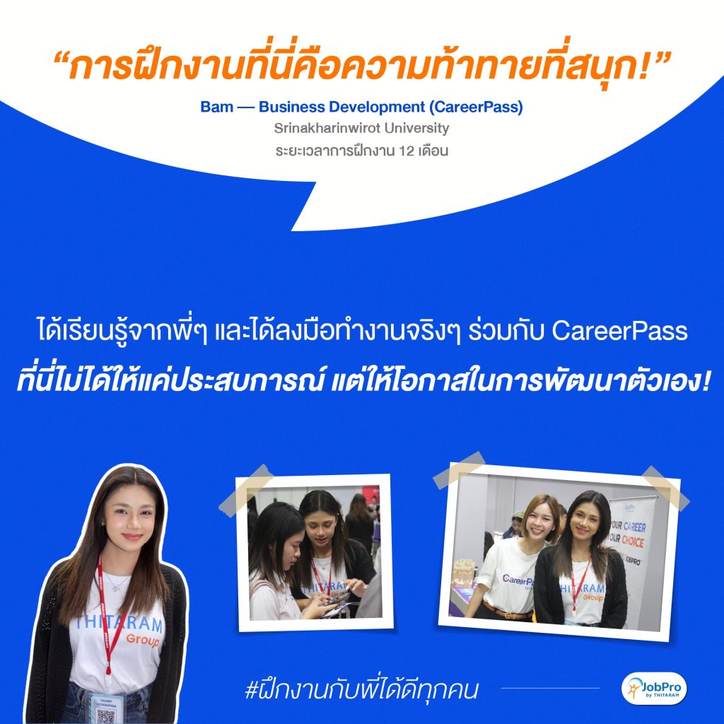 “การฝึกงานที่นี่คือความท้าทายที่สนุก! ได้เรียนรู้จากพี่ ๆ และได้ลงมือทำงานจริง ๆ ร่วมกับ CareerPass ที่นี่ไม่ได้ให้แค่ประสบการณ์ แต่ให้โอกาสในการพัฒนาตัวเอง! #ฝึกงานกับพี่ๆ ได้ดีทุกคน“