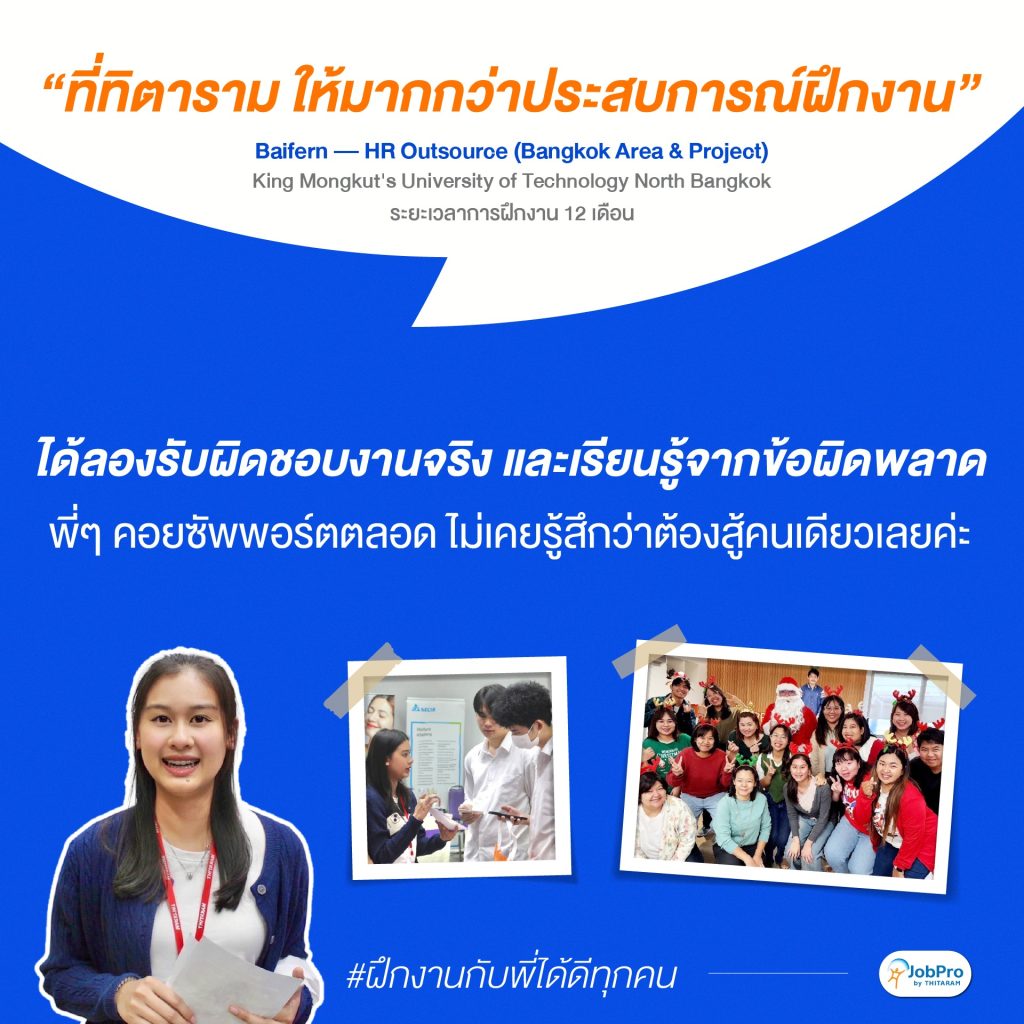 “ที่ธิตาราม ให้มามากกว่าประสบการณ์ฝึกงาน ได้ลองรับผิดชอบงานจริง และเรียนรู้จากข้อผิดพลาด พี่ ๆ คอยซัพพอร์ตตลอด ไม่เคยรู้สึกว่าต้องสู้คนเดียวเลยค่ะ #ฝึกงานกับพี่ๆ ได้ดีทุกคน“